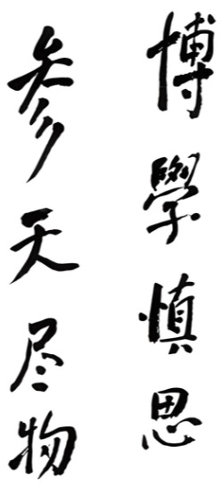 "Erudite Careful Thinking" Comes From "Li Ji · The Mean" : "Erudite, Interrogate, Careful Thinking, Discernment, And Careful Action." (Chapter 20) "Reaching The Sky And Doing Everything" Comes From "Li Ji · The Mean" : "Only The World Is Sincere, In Order To Do Its Nature; If You Can Do Your Best, You Can Do Your Best; If You Can Do The Human Nature, You Can Do The Nature Of Things; If You Can Do Things, You Can Praise The Cultivation Of Heaven And Earth; If You Can Praise The Cultivation Of Heaven And Earth, You Can Participate In Heaven And Earth." (Chapter 22) Zhang Zhidong, In His Famous "Exhorting To Learn", Summed Up All The Knowledge Of The Confucian School In Only Three Sentences: "The Study Of The Empty Gate, Blog And About The Rites, Review The Old To Know The New, And Reach The Sky To Do Everything." School Motto Two Points Have Accounted For 2/3, As For The "Review Of The Old And New" But The Specific Learning Method, Compared With The Other Two Points Is Not So Important. "Erudite Careful Thinking" Means Extensive Learning, Multi-Faceted Absorption Of Knowledge, And Then Careful Careful Thinking, Understanding, Digestion, Which Is A Whole Process Of Learning. "Towering Things", "Ginseng" Is The Meaning Of Participation, Zhu Xi Notes: "And Heaven And Earth Ginseng, That And Heaven And Earth Stand For Three Also." "Do", All Play Out. The Original Meaning Is That Everyone Can Give Full Play To Their Honest Nature, Human Beings Can Show All The Beauty Of Human Nature, And All Things Can Live In Harmony With People. Then It Can Help The Earth And Nourish Everything. The Purpose Is To Show That Human Beings Can Achieve The Unity Of Heaven And Man And The Integration Of Man And Nature After Exerting All The Good And Honest Nature. "The Sky Is Full Of Things" More To Leave The Original Intention, Only The Literal Meaning Can Also Be Understood As Follows: Investigate The Mystery Of Nature, Explore The Origin Of All Things, More Inclusive Than "Ge Object Zhizhi", More Rich Connotation, Roughly Equivalent To Sima Qian'S "Study Of Heaven And People, Through The Ancient And Modern Changes." Of Course, As A Research And Exploration Of Specific Knowledge, It Is Entirely Possible To Understand By Specialized Knowledge,And It Is Common To Understand Metaphysically And Physically, And It Also Has A Strong Humanistic Spirit.