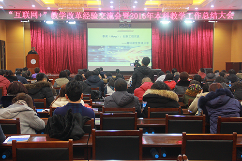 1月4日下午,“互联网+”教学改革经验交流会暨2016年本科教学工作总结大会在sunbet申搏主楼一楼报告厅召开。sunbet申搏校长何颖、副校长严明以及各教学院(部)和相关部门负责人参加了会议。会议由教务处副处长吴华洋主持。四位在“互联网+”教学改革中取得突出成绩的教师分享了教学经验。电子工程学院教师朱勇就“如何引进优质慕...