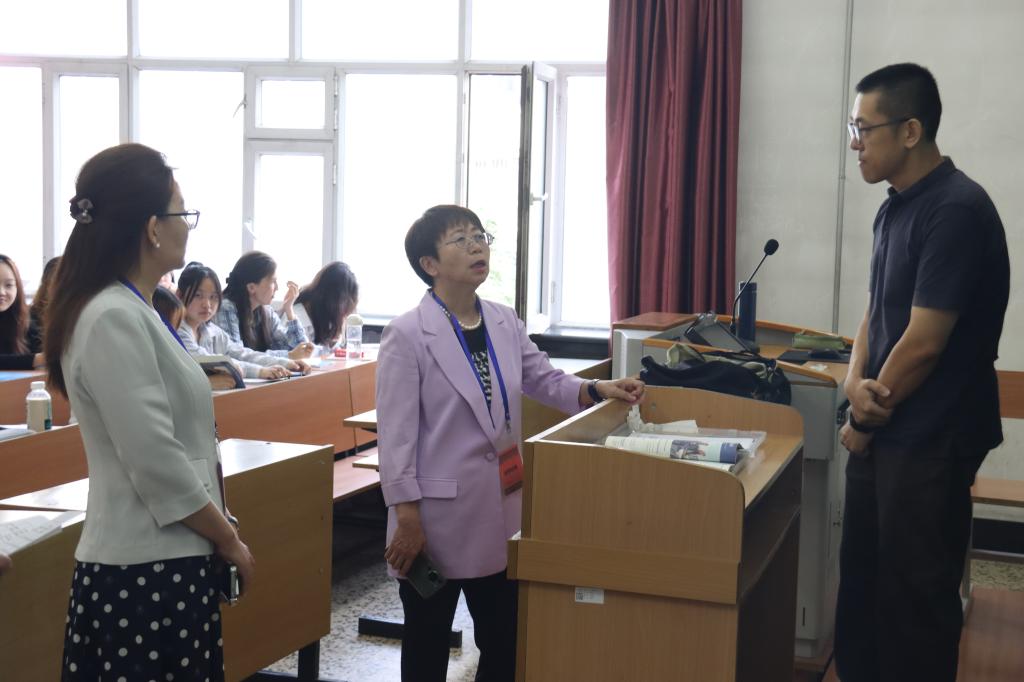 检查组一行深入课堂,对教师到岗、学生出勤、课堂秩序、教学设备运行等情况进行了细致检查,全面了解新学期课堂教学状况。在大学英语A(Ⅲ)、管理沟通等课程的课堂上,王敬波向授课教师详细询问了课程的教学内容、教学方法、课程规划、学生学习表现及师生互动交流等情况,并查阅了学生教材、课堂笔记等资料。此外,她还深入了解了学习通等教学平台、数字资源的使用情况,并到智慧教室倾听教师授课内容和课程设计,切实掌握新学期教学起步阶段的具体情况。