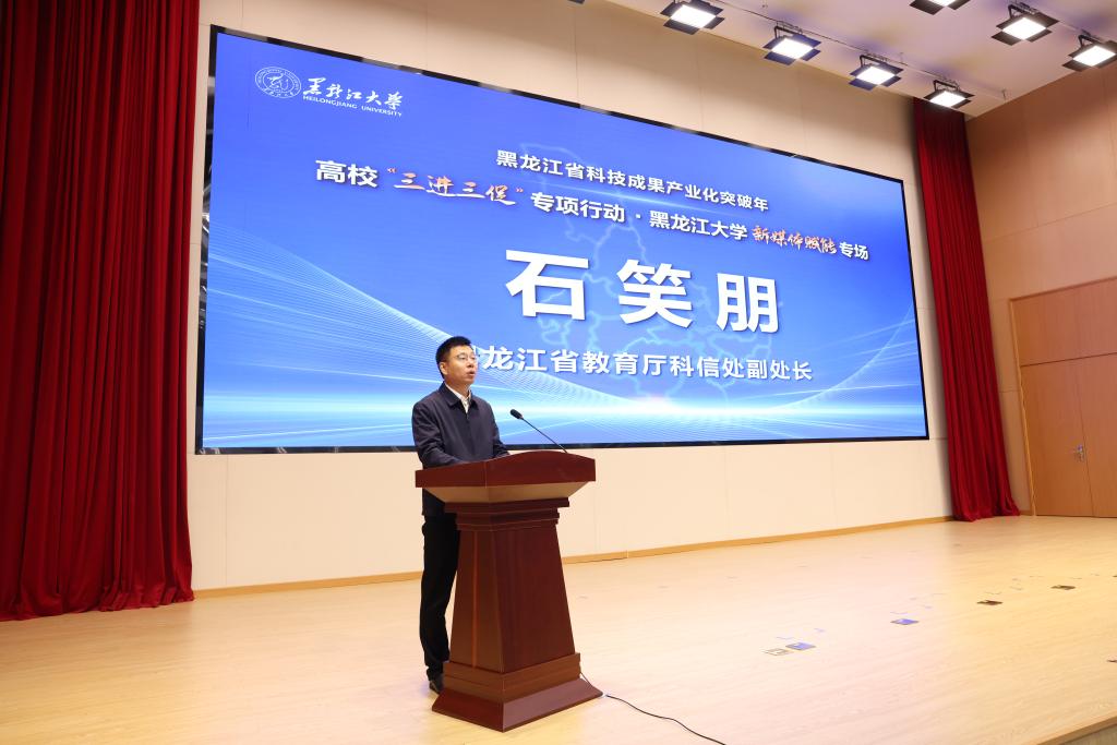 石笑朋在致辞中指出,省教育厅推动高校开展有组织科研创新,健全科技成果转化体系,成立4个高校科技成果转化联盟,推进“三进三促”专项行动,年初以来举办32场对接活动,促成签约70余项。省教育厅将加力推进“三进三促”,推动高校成果精准、就地、高质量转化。希望高校深化产学研用协同,聚焦地方需求提供服务,加大校企合作支持;呼吁企业等社会力量融入,共筑发展共同体,为龙江振兴贡献力量。
