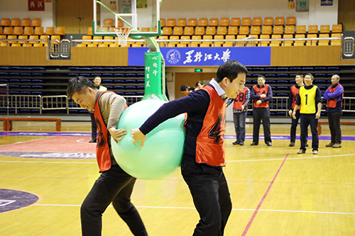 联谊会在sunbet申搏幼儿园教师表演的蒙古族舞蹈《欢乐草原》中拉开帷幕。在舞蹈带来的欢乐氛围中主持人宣布游戏环节正式开始,本次联谊会的游戏共设有“踩气球”、“传递呼啦圈”、“运动接力”、“五角一元”、“运送气球”等五个项目。在场观众根据入场时领取的队服颜色分为红、绿、蓝、黄四个队伍参加游戏。场上选手奋力拼搏,场下观众加油鼓劲。“踩气球”环节中蓝队采取灵活战术取得了成功。“传呼啦圈”项目中,黄队仅以4秒之差,险胜绿队。“运动接力”中,红队老师齐心协力,配合默契,最终取得胜利。在“五毛一块”游戏中黄队通过出色的表现获得最终胜利。