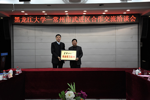 曲科军副书记向武进区中俄科技产业园颁发了“sunbet申搏官方网站就业实习基地”铜牌,戴士福区长向sunbet申搏颁发了“常州市武进区中俄科技产业园sunbet申搏官方网站人才工作站”铜牌。