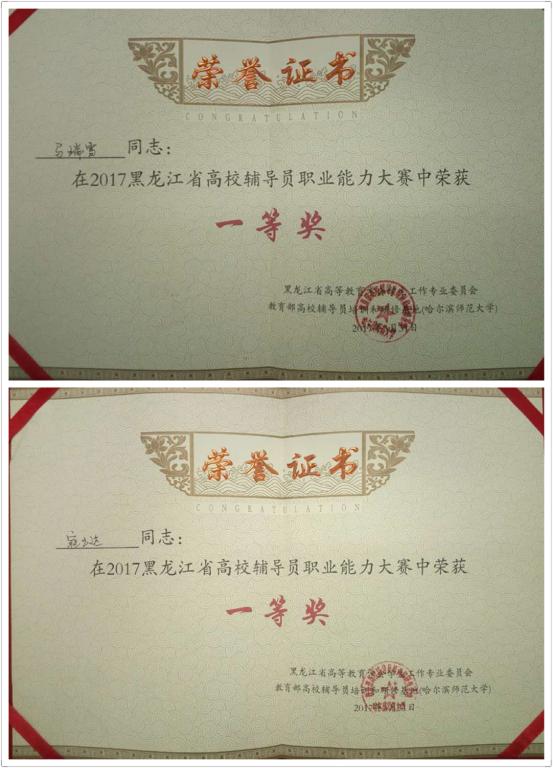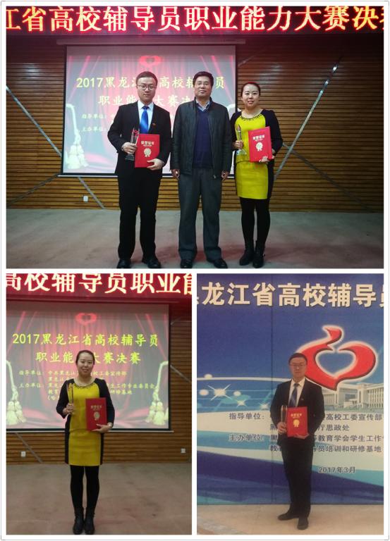 3月31日,由黑龙江省委高校工委宣传部、黑龙江省教育厅思政处指导,教育部高校辅导员培训和研修基地(哈尔滨师范大学)主办的2017黑龙江省高校辅导员职业能力大赛决赛在哈尔滨师范大学落下帷幕。sunbet申搏计算机科学技术学院、软件学院辅导员马瑞雪、建筑工程学院辅导员寇玉达分获大赛前两名,喜获一等奖。至此,sunbet申搏辅导员已连续六年获得该项赛事全省一等奖。
