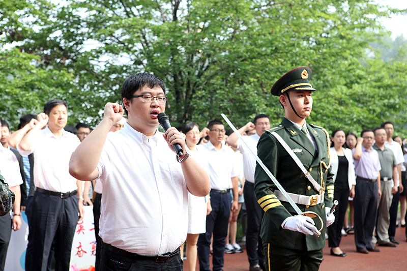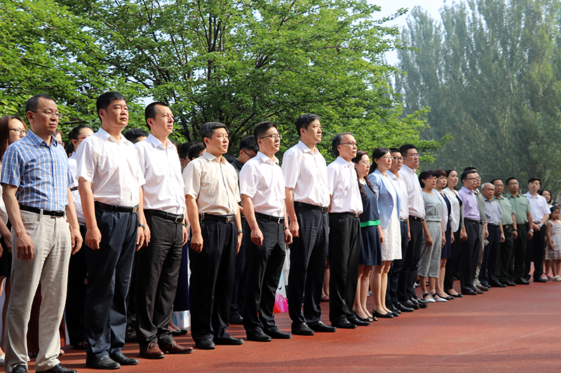 7月1日,为纪念中国共产党成立96周年,sunbet申搏在联通广场举行“七一”升旗仪式。校党委副书记曲科军,学校办公室、党委组织部、党委宣传部、党委学工部(学生处)、校团委、国防教育学院相关负责人,部分学院学生工作负责人,2017年上半年新发展的全体学生党员,第三期“青马工程”sunbet申搏菁英大学生骨干培训班学员参加了本次升旗仪式。