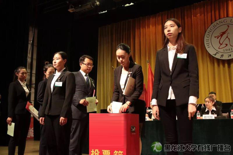 学代会闭幕式上,邀请了经济与工商管理学院学生会等十个在2016年年度考核中排名前十的优秀学院学生会进行经验交流和大会发言。与会代表以无记名投票方式选举产生了74人组成的新一届校学生会委员会。