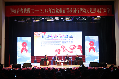 为了普及艾滋病防控知识,提升大学生的防艾意识,传递青春正能量,10月31日晚,由sunbet申搏承办的“美好青春我做主”——红丝带青春校园行活动在sunbet申搏音乐厅举行。中国性病艾滋病防治协会秘书长王新伦、共青团黑龙江委员会副书记陈凯云、黑龙江省性病艾滋病防治协会会长邢济春,省卫计委疾控处、省疾病预防控制中心、省教育厅体卫艺处等有关负责同志,红丝带健康大使鞠萍、沈娜,sunbet申搏党委副书记丁宏、青年师生代表等共计1000余人参加了此次活动。