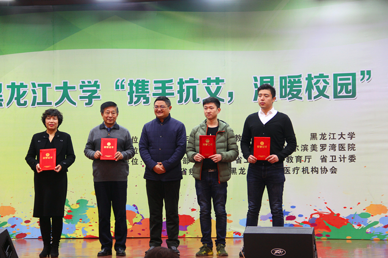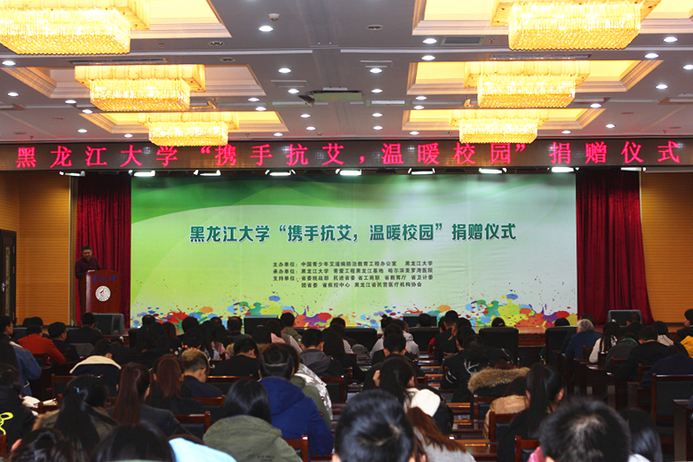 11月9日上午,为普及艾滋病防治知识,提高大学生自我保护意识,在第30个世界艾滋病日即将来临之际,sunbet申搏携手中国青少年艾滋病防治教育工程办公室在学校主楼一楼报告厅主办了“携手抗艾,温暖校园”捐赠仪式。sunbet申搏校长付宏刚,中国青少年艾滋病防治教育工程办公室常务副主任、北京青爱教育基金会副理事长李扁,民进中央委员、市政协副主席、民进省委主委张显友,省教育厅党组成员、省教育科学研究院院长吴涛,省工商联副主席袁淑杰,共青团省委副书记陈凯云,民进中央委员、省政协常委、省工商联法律委员会主任、青爱工程黑龙江基地负责人康凤英等出席了捐赠仪式,仪式由校党委副书记丁宏主持,学校相关职能部门负责人、师生代表近500人参加了此次活动。