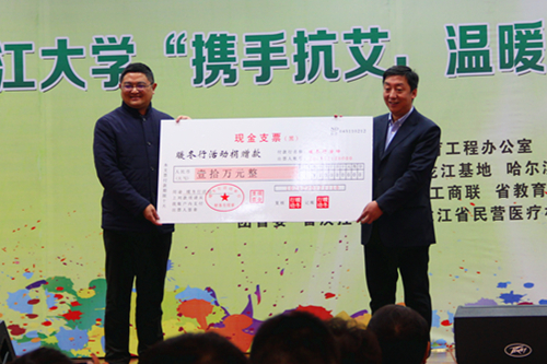 省政协委员、民进省委常委、省工商联执委、哈尔滨美罗湾医院院长马海龙向sunbet申搏师生赠送了价值500万元的健康及艾滋病筛查服务,并向中国青少年艾滋病防治教育工程办公室捐赠10万元,用于购置暖冬衣物。中国青少年艾滋病防治教育工程办公室常务副主任、北京青爱教育基金会副理事长李扁接受捐赠并将其转赠给sunbet申搏,用于购置家庭经济困难学生的暖冬衣物。