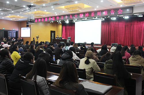本次报告会是新闻传播学院学习十九大精神系列报告会的第三场。此前,现任工人日报哈尔滨记者站站长、新闻传播学院硕士毕业生张世光为新闻传播学院师生分别作了两场十九大精神报告。(摄影:李泽峰)