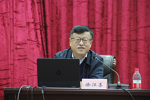 徐江善校友从“勿忘人民—从革命老区的一碗面条说起”、“人民至上—革命老区5年前后的记忆影像”、“新时代新呼唤—不忘初心家国情怀”三个主题入手,结合工作经历阐述了自己对十九大精神的理解。他讲述了自己深入革命老区进行脱贫攻坚调研的经历,并分享了自己的人生感悟:生活是一本取之不尽用之不竭的书,灵魂只有在深入基层深入实际中得到净化;记者要始终深深扎根到人民群众之中,记者的心要始终成为社会良知的常青树;身下更要心下,体察民意持之以恒;为人民代言,为党分忧是新时期新闻记者的神圣天职。同时,他指出,如今我们已经迈入新时代,新闻工作者要学习贯彻十九大精神,与人民同呼吸,与时代共进步。