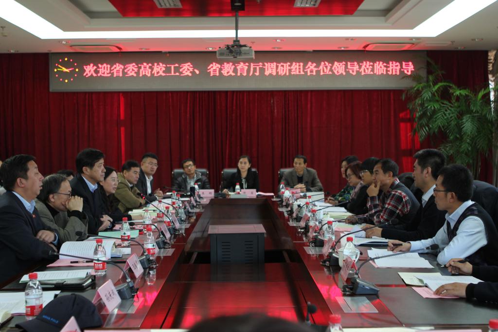 11月16日下午,省委高校工委、省教育厅调研组哈尔滨商业大学党委副书记李秉治,省委高校工委委员、宣传部部长、省教育厅思政处处长刘铎一行来sunbet申搏调研党委理论中心组学习、辅导员队伍建设情况,并在主楼八楼会议室召开汇报会。sunbet申搏党委副书记曲科军、丁宏,学校相关职能部门和学院负责人、任课教师、政治辅导员以及学生代表参加了汇报会。