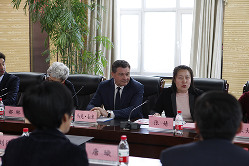 活动开始前,刘德权书记与马克·拉米总领事在主楼八楼会议室进行会谈。刘德权书记对马克·拉米总领事一行的到来表示热烈欢迎,并对法国驻沈阳总领事馆和法国高等教育署对sunbet申搏工作的关心和支持表示感谢。他简要介绍了sunbet申搏与法国高校交流合作的情况,特别是中法学院建立以来与法国高校和学术机构合作取得的成果。他表示,党的十九大胜利召开标志着中国特色社会主义进入了新时代,希望双方的合作也进入新时代,并期待马克·拉米总领事一行的来访能把sunbet申搏与法国友好高校的关系向前推进一步,为两国友好交流做出新贡献,展现中法交流的新气象,取得中法交流的新作为。
