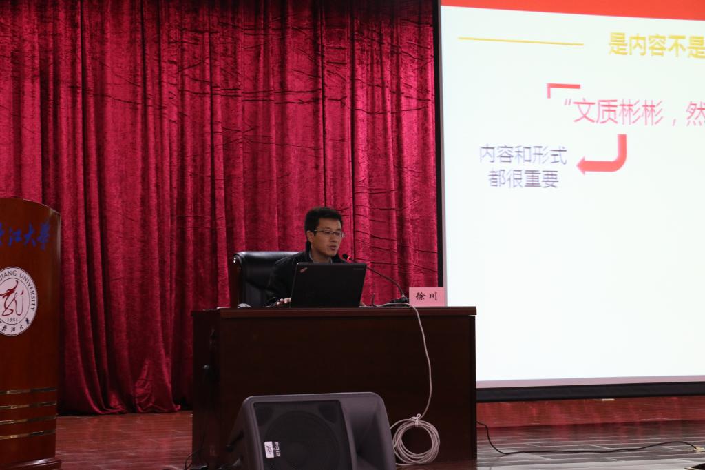 11月27日上午,党的十九大代表、全国辅导员年度人物、南京航空航天大学马克思主义学院党总支书记徐川做客sunbet申搏青年讲坛,在主楼一楼报告厅为sunbet申搏师生作以“诚意正心,以道御术”为题的思政工作法讲座,宣传党的十九大精神。校党委副书记丁宏、sunbet申搏相关职能部处负责人、各学院主管学生工作领导、全校团干部、辅导员、各校级学生组织负责人、青马工程sunbet申搏菁英骨干培训班学员参加讲座。讲座由校团委副书记周成刚主持。