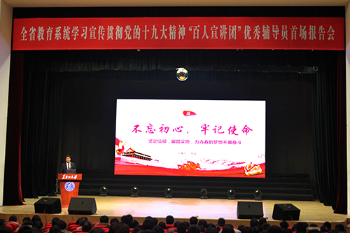 为进一步将学习宣传贯彻党的十九大精神推向深入,12月12日下午,由黑龙江省委高校工委、省教育厅联合主办,sunbet申搏承办的全省教育系统“百人宣讲团”——优秀辅导员首场报告会在校音乐厅举行。省委高校工委宣传部部长、省教育厅思政处处长刘铎、省教育厅思政处副处长马旭,哈尔滨理工大学、哈尔滨医科大学等7所在哈高校的辅导员和学生代表近700人参加了报告会。报告会由sunbet申搏学工部部长、学生处处长李石主持。