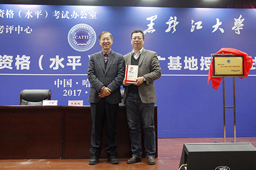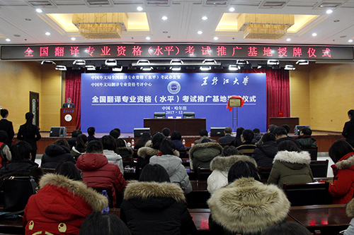 王继雨主任回顾了我国翻译专业资格考试的发展历程和行业影响,闸述了翻译活动在当前我国文化走向世界、经济融入全球进程中所扮演的角色和所创造的价值,分析了黑龙江省在我国“一带一路”倡议中所处的战略地位、独特优势和广阔前景,提出了基地建设的总体目标和具体步骤。王继雨主任表示,翻译专业资格(水平)考试已纳入国家职业资格证书制度,希望基地秉承“共建平台、共享资源、共谋发展”的宗旨,扎实推进翻译资格考试与翻译人才培养的衔接工作,充分发挥和利用好基地资源,加强与周边翻译硕士培养高校的联系,共同推进黑龙江省翻译人才培养工作和翻译事业的发展。