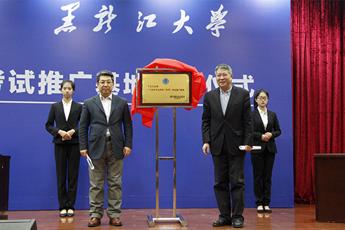 仪式上,付宏刚校长代表学校与王继雨主任签订了“全国翻译专业资格(水平)考试推广基地”共建协议并为基地揭牌。