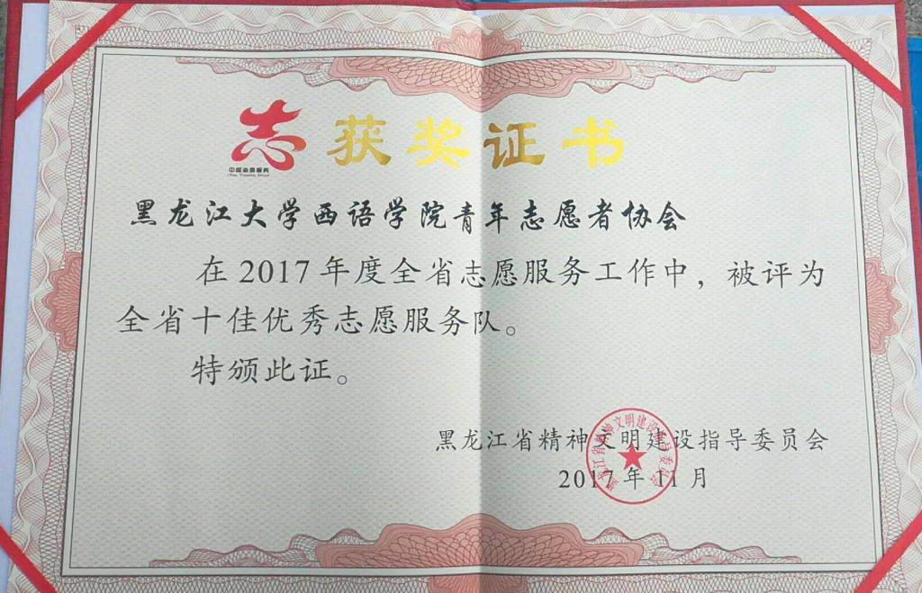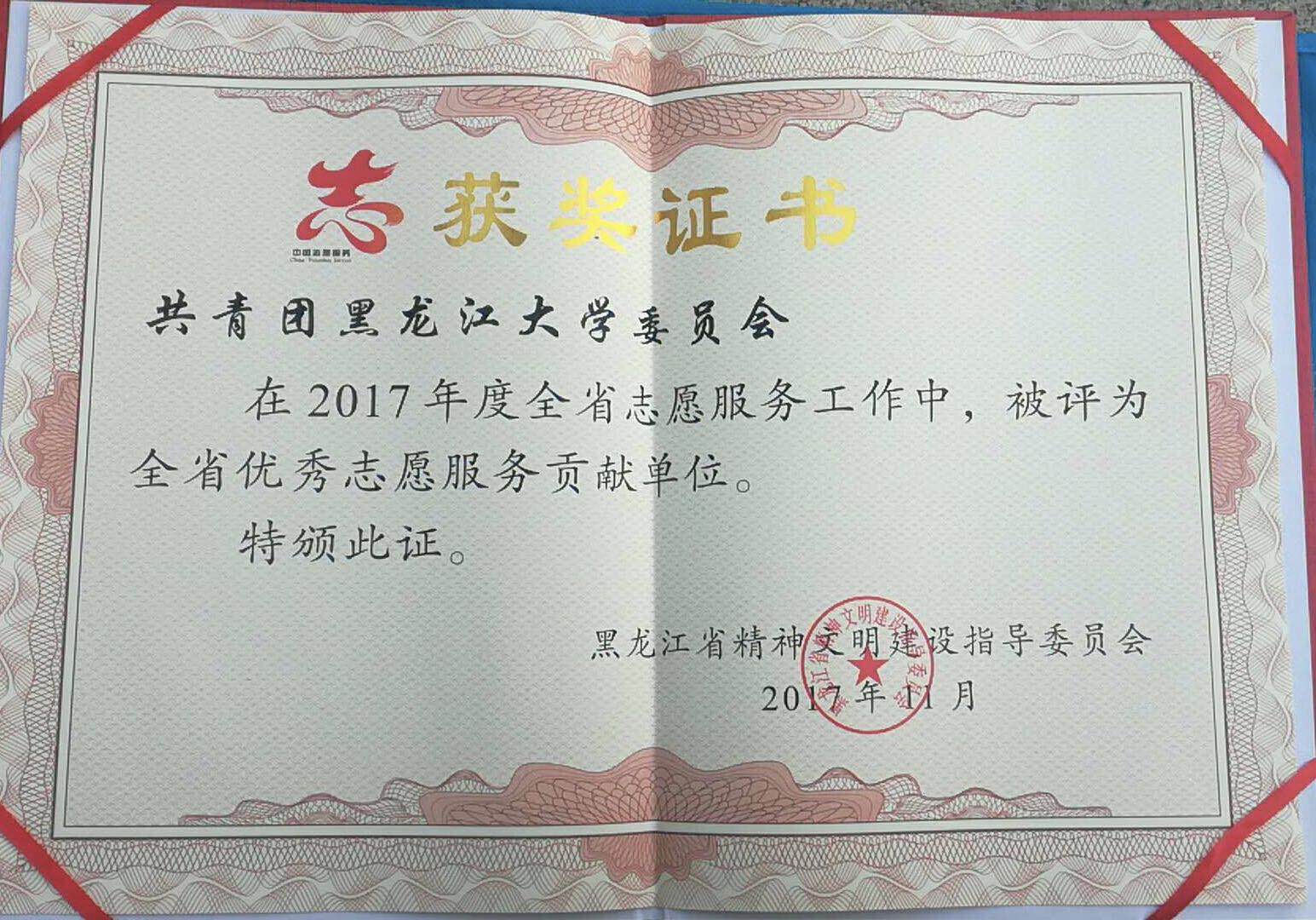 为大力弘扬奉献、友爱、互助、进步的志愿精神,按照中央文明办和省文明委2017年工作安排,黑龙江省精神文明建设指导委员会开展了2017年度全省志愿服务“五个100”先进集体和个人评选工作,sunbet申搏是全省获奖数量最多的高校之一。经过申报和专家评审等环节,sunbet申搏团委被授予“全省优秀志愿服务贡献单位”荣誉称号;西语学院青年志愿者协会被授予“全省十佳优秀志愿服务队”荣誉称号;化学化工与材料学院被授予“全省优秀学雷锋志愿服务工作站”荣誉称号;计算科学技术学院、软件学院“伴你成长,陪你变老”志愿服务项目被授予“全省优秀志愿服务项目”荣誉称号。