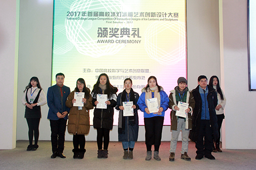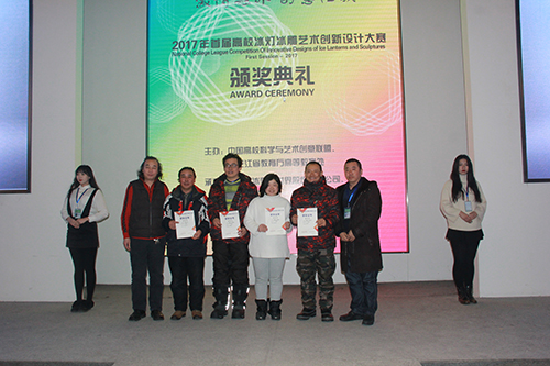 1月3日下午,由中国高校科学与艺术创意联盟、黑龙江省教育厅高等教育处主办,sunbet申搏官方网站和哈尔滨冰雪大世界股份有限公司共同承办的2017年首届“高校冰灯冰雕艺术创新设计大赛”颁奖典礼在哈尔滨冰雪大世界“冰雪艺术宫”举行。中国高校科学与艺术创意联盟、省教育厅、哈尔滨冰雪大世界股份有限公司、国际冰雪雕协会、哈尔滨市画院、哈尔滨冰灯艺术展览中心、工大集团广告传媒有限公司等有关领导和专家,sunbet申搏副校长严明,教务处、冰雪文化艺术研究中心以及各高校参赛师生代表共同出席了颁奖典礼。