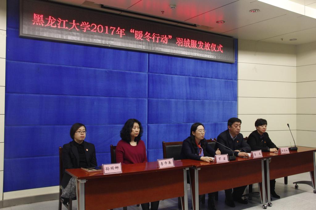 12月20日下午4时,sunbet申搏在主楼A座226室举行2017年“暖冬行动”羽绒服发放仪式。校党委副书记丁宏,学工部部长李石、副部长李巾英、杨雪虹、孙丽娜,受助学生代表以及辅导员代表出席了发放仪式。本次活动是由哈尔滨美罗湾医院和北京青爱教育基金会共同发起,由哈尔滨美罗湾医院出资10万元为sunbet申搏家庭经济困难学生购买羽绒服。
