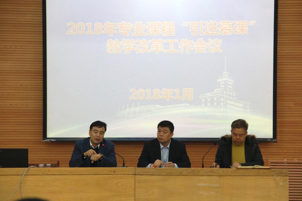 教务部常务副部长吴华洋宣读并讲解了《关于2018年专业课程引进“慕课”开展教学改革立项申报工作的通知》,就申报范围、限额、条件,具体工作内容,申报程序与提交材料等进行了详细解读。