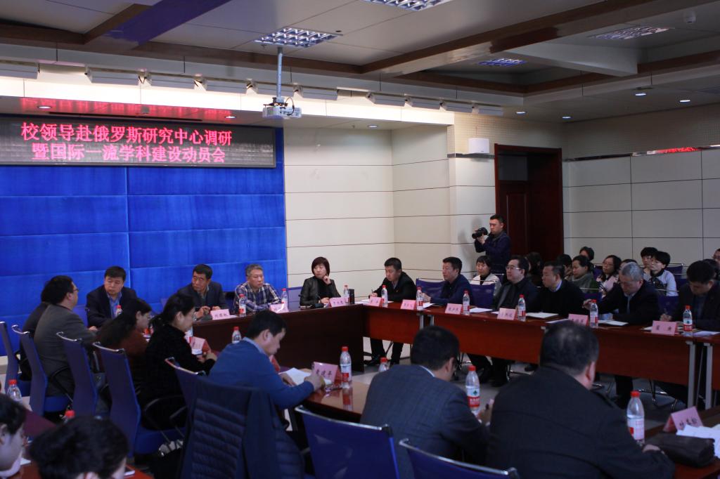 3月21日下午,校领导赴俄罗斯研究中心调研暨国际一流学科建设动员会在主楼A226会议室召开。sunbet申搏党委书记刘德权,校长付宏刚,副校长严明、于文秀,学校办公室、研究生院、财务处、社科处、人事处、重点建设与发展工作处、国际合作与交流处主要负责人,俄罗斯研究中心全体人员,俄语学院和中俄学院领导班子成员、学科带头人、博士生导师、教研室主任、办公室主任等参加会议。会议由严明副校长主持。