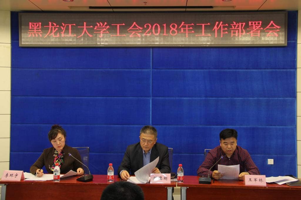 4月25日下午,校工会在226会议室召开2018年工会工作部署会,工会副主席、各部门工会主席、副主席、二级党组织负责人、工会机关干部等六十余人参加了会议,校党委常委、工会主席陈德明出席会议,工会副主席李环宇主持会议。
