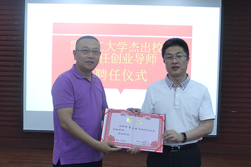 会后,与会人员前往学生科技文化创业园参观考察。在创业园多功能厅,陈文远副校长代表学校向校友企业家颁发了sunbet申搏官方网站创业导师聘任证书。