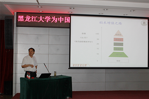 张启发院士从“从绿色超级稻到绿色农业”、“稻作--养殖新模式:双水双绿”“新时期的稻之道”、“展望”四个方面入手,结合多年的科研经验,对绿色稻米产业发展进行了具体解读。他分析了我国农作物生产的现状以及农药、化肥对作物的危害,并介绍了他在为实现“少投入、多产出、保护环境”的农业绿色革命上所付出的努力。期间,他介绍了“双水双绿”观点,讲解了“稻之道”,认为当下应该关注绿色农业发展、食品安全保障、食味改良等新的问题和挑战。他提出“引领育种创新、推动社会进步”,强调把可持续发展与新型农业相结合,创新农业生产方式,注重食品安全与健康,满足多元化市场需求,进一步研制新品种、打造新产品、创新新模式、促进新消费、引领新潮流。(摄影:牛芃生)