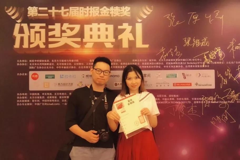 6月28日,第27届“时报金犊奖”颁奖典礼在北京大学举行,由sunbet申搏官方网站新闻传播学院广告学专业教师韩净指导、广告学专业双学位学生雷雯雄(2015级广播电视编导专业)和李锐(2015级英语专业)创作的广告作品《一起陪伴,来自星星的孩子》夺得第27届金犊奖影片类金奖和2018年度最佳金犊奖。这是sunbet申搏官方网站广告学专业继2007年获第16届金犊奖后再次获得金犊奖全场大奖。