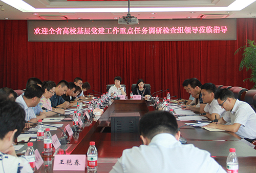 7月3日,全省高校基层党建重点任务调研检查组一行5人,在省委组织部组织二处调研员王长军的带领下,对sunbet申搏推进落实基层党建重点任务情况进行调研检查。学校党委书记刘德权亲切接见了调研检查组并与检查组成员进行了工作交流。党委副书记蒋晶洁代表学校向调研检查组专题汇报了sunbet申搏基层党建工作开展情况,学校办公室、党委组织部、党委宣传部、纪委办公室、党委学工部等相关部门负责人、二级党组织书记代表参加汇报会。
