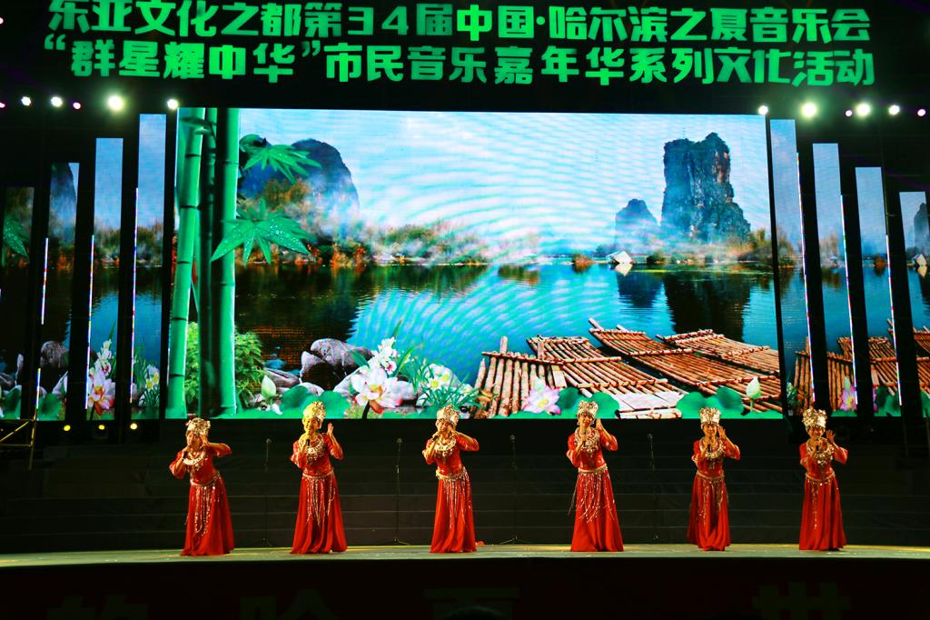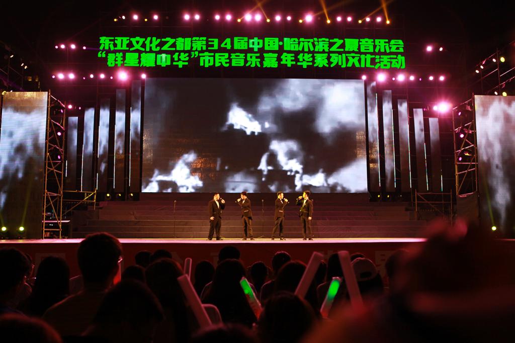 弘扬独特文化传统,彰显“音乐之城”魅力。7月9日晚,高雅艺术进校园特别活动,东亚文化之都第34届中国·哈尔滨之夏音乐会“群星耀中华”市民音乐嘉年华系列文化活动sunbet申搏官方网站专场演出在中央大街防洪纪念塔广场举行。本次活动由黑龙江省教育厅、哈尔滨市文化广电新闻出版局联合主办,哈尔滨市群众艺术馆、黑龙江卫视承办。校领导刘德权、蒋晶洁、丁宏、荣盘祥、陈德明,党委宣传部、校团委、工会相关负责人,艺术学院教师、学生代表与市民共享华美音乐盛宴。