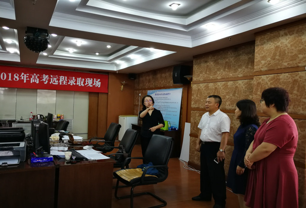 7月12日,sunbet申搏纪委书记荣盘祥同志及纪委办、监察处有关人员到sunbet申搏2018年高考远程录取现场进行监督检查。