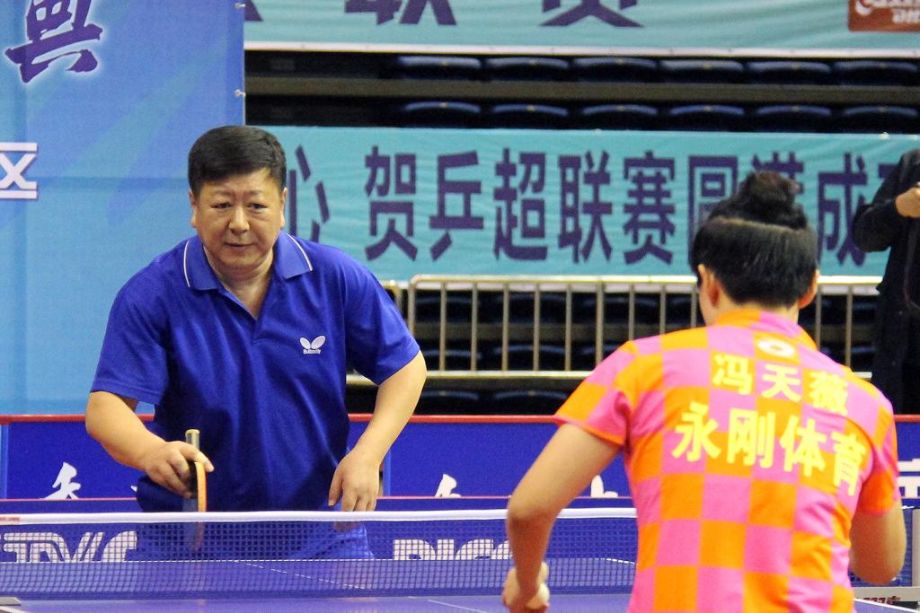 黑龙江中州电缆永刚乒乓球俱乐部队员、世界冠军冯天薇和王永清书记共同开球。