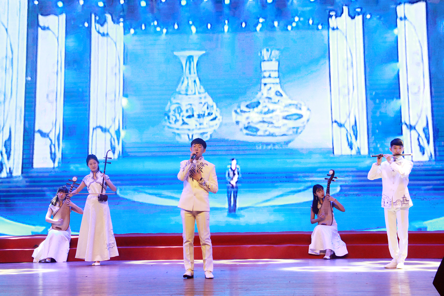 民乐小合奏《江南风韵》和弦响起,仿佛带领听众走进烟雨朦胧、如梦如幻的江南水乡,深情款款的民乐旋律让观众犹如身临其境。