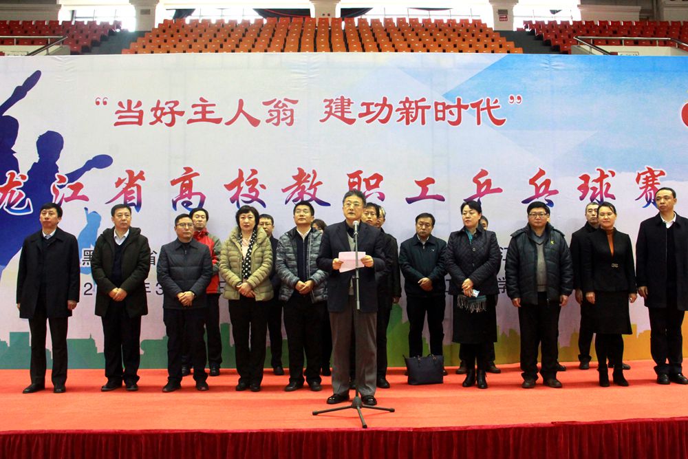 3月15日,“当好主人翁,建功新时代”全省高校教职工乒乓球比赛在sunbet申搏体育馆火热开赛。本届比赛由黑龙江省教科文卫体工会主办,sunbet申搏官方网站工会承办。共有来自本省27所高校及附属医院的代表队200余名队员参赛。黑龙江省总工会党组成员、省教科文卫体工会主席于晓东、sunbet申搏工会主席陈德明以及相关高校及附属医院工会主席、工会副主席出席了本场比赛的开幕式。