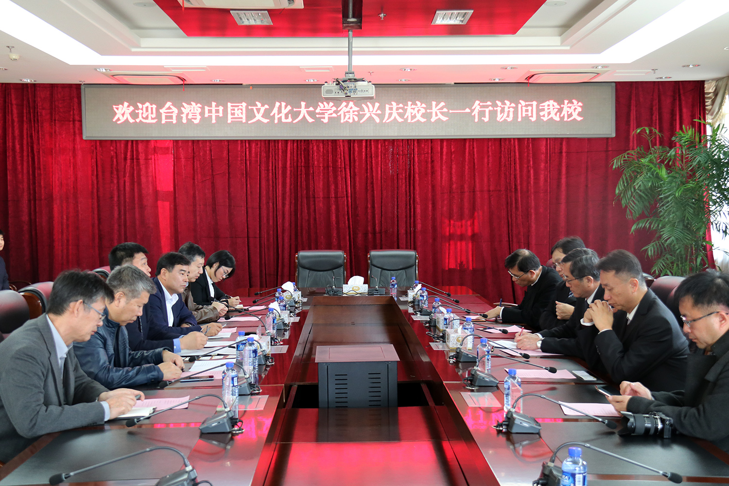 徐兴庆校长围绕台湾中国文化大学的办学历史,从学科体系、人才交流、国际合作等方面进行了相关介绍,并就该校部分专业的学科建设情况、国际交流项目情况同与会人员作以交流。他表示,两岸同根同源的文化认同为两校进一步交流合作提供了更广泛的媒介与渠道,也为两校在现有基础上进行更深入的学术交流、学者互访提供了更好的环境与平台。他希望此次访问活动在拓宽合作领域的基础上,加深多领域合作互信、提升校际间合作水平,共同谱写两校多领域、深层次交流合作新篇章。