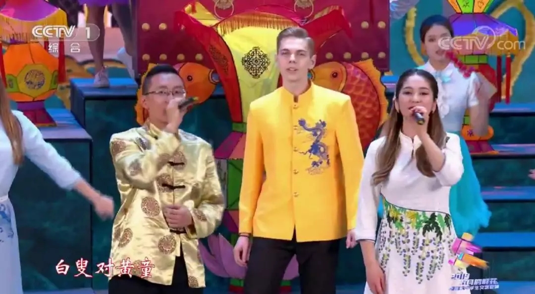 sunbet申搏国际文化教育学院18名俄罗斯留学生参演情景表演唱《中国话》,向全国观众展现了sunbet申搏鲜明的对俄办学特色。