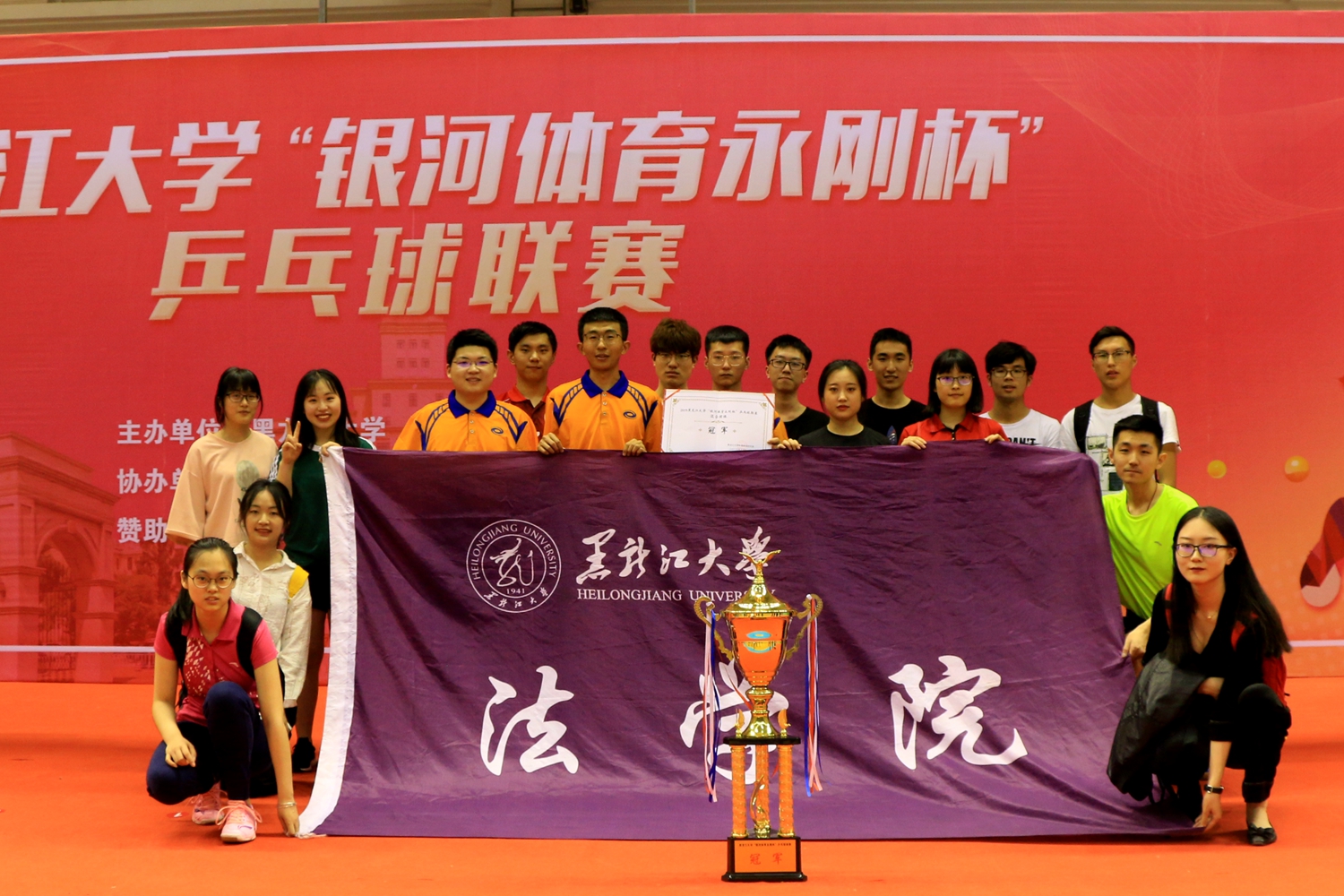 在接下来2天的激烈比赛中,运动员们敢打敢拼,赛出风格,赛出水平。在5月12日举行的闭幕式上,王永刚董事长为获得第一名的法学院代表队颁发“银河体育永刚杯”冠军奖杯。河北银河体育市场部总监王松为获奖学生颁发比赛奖品。