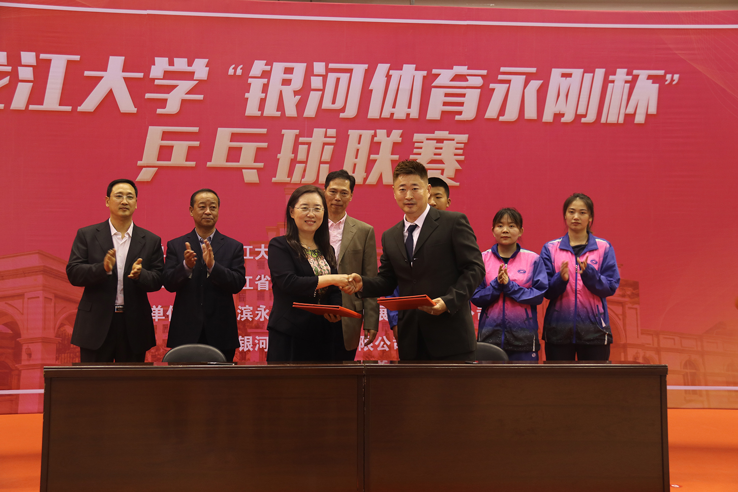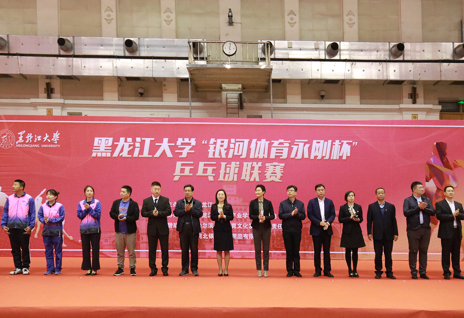 丁宏副书记致开幕辞。她表示,学校一直以来高度重视校园体育文化发展和建设,认真贯彻落实习近平总书记关于“培养德智体美劳全面发展的社会主义建设者和接班人”的重要指示精神,积极倡导“健康体魄、健全人格”的体育教育理念。学校体育文化活动扎实推进,成果丰硕。本次“银河体育永刚杯”学生乒乓球团体赛是校企联办,体育明星进校园合作模式的典范,旨在将先进的企业文化与校园体育文化相融合,用体育明星的励志故事激发大学生追梦的激情和理想。
