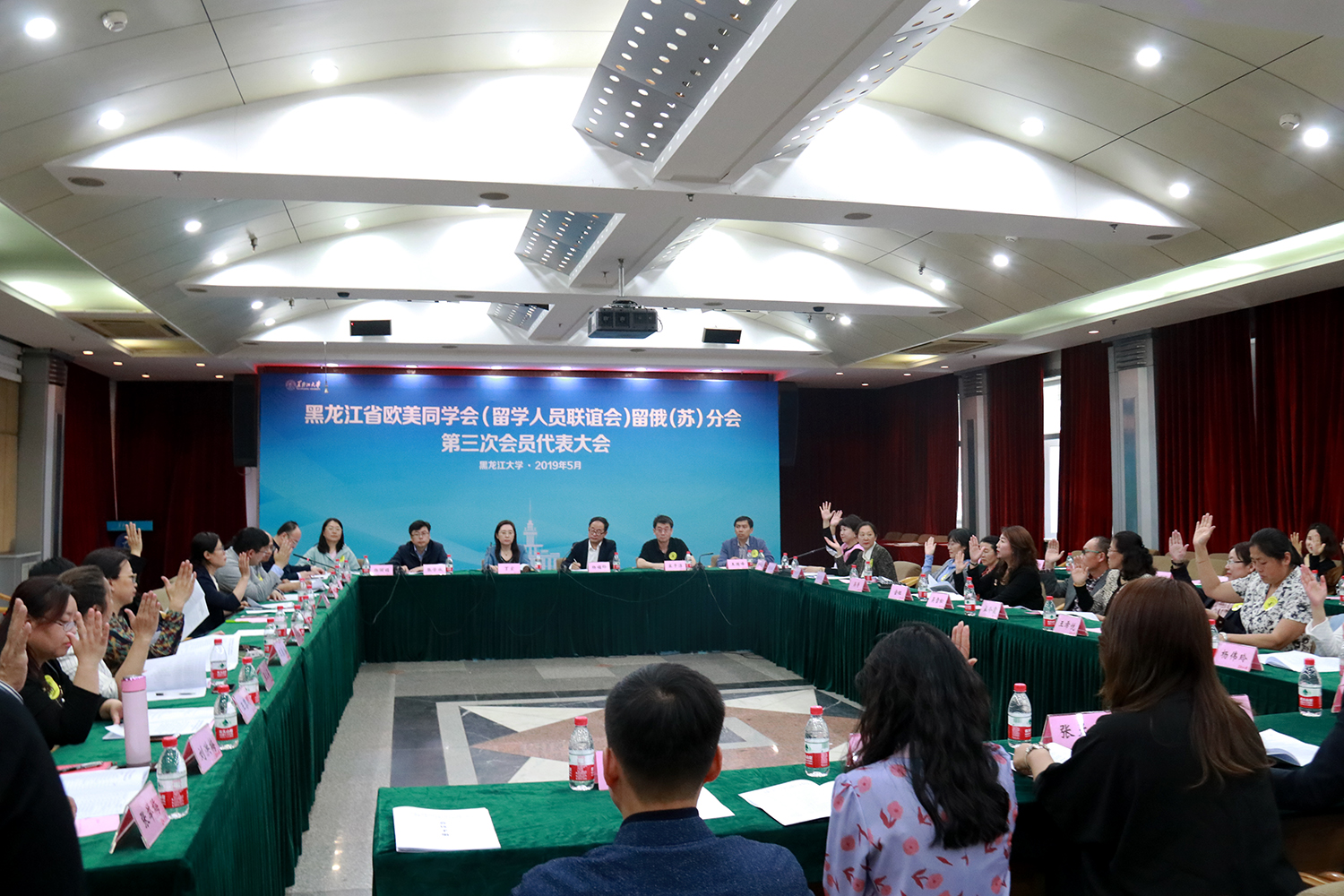 2019年5月17日下午,黑龙江省欧美同学会留俄(苏)分会第三次会员代表大会暨理事会换届大会在sunbet申搏官方网站外事处二楼多功能厅召开,省欧美同学会副会长兼商会会长、省科协原党组书记、副主席杨铭铎、副秘书长宋子淳、会员部主任王国峰,sunbet申搏官方网站党委副书记丁宏,党委常委、宣传部、统战部部长张学成,省欧美同学会留俄分会第二届会长何文丽、留日分会副会长兼秘书长李显筑、副秘书长李桂雪出席会议,会议由留俄分会第二届理事会秘书长杨亚非主持。