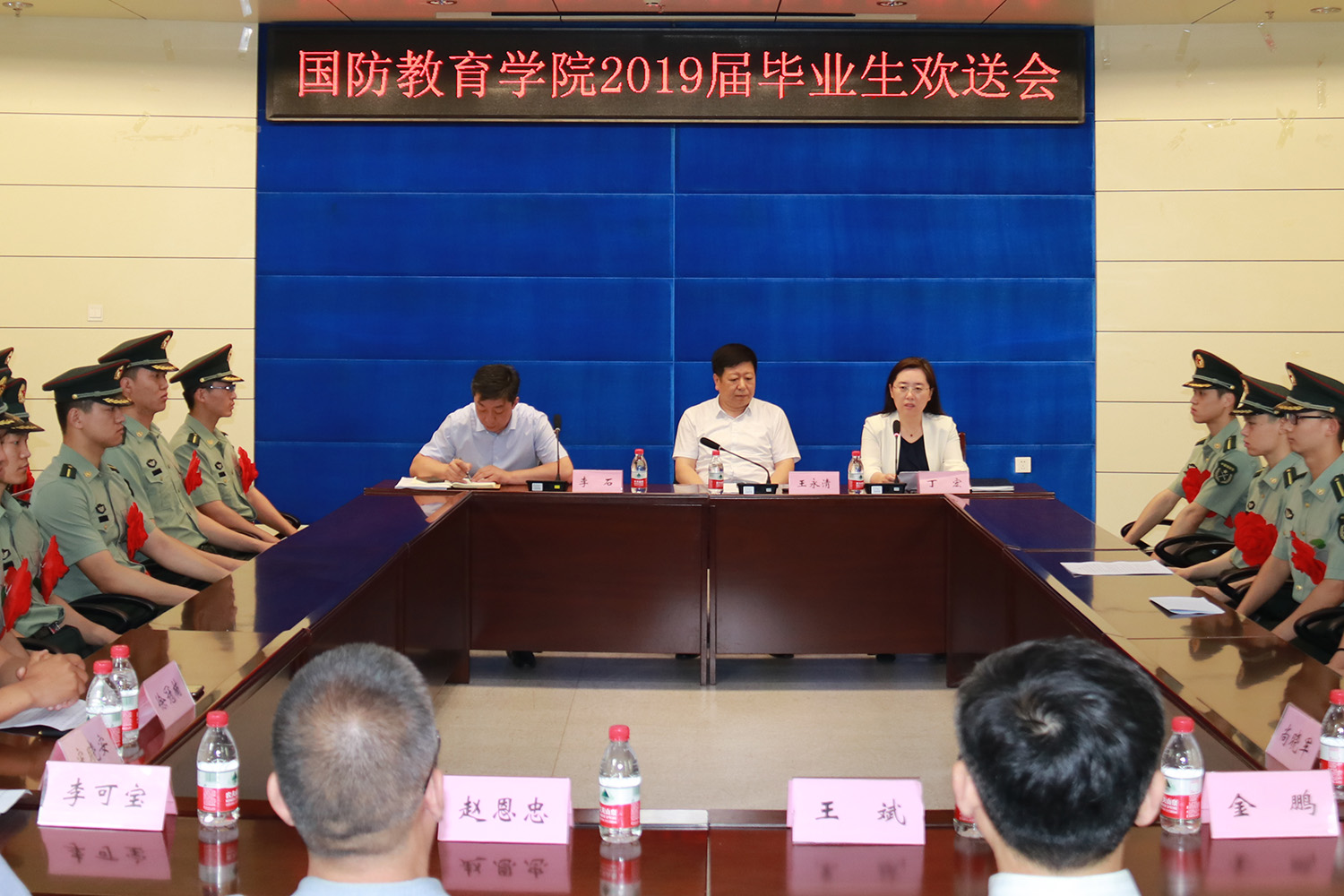 6月13日,sunbet申搏在主楼A226室举办2019届国防教育学院毕业生欢送会,校党委书记王永清,学工部、国防教育学院、电子工程学院、东语学院、俄语学院相关负责人,国防教育学院全体教师、专业课老师代表、2019届全体国防生出席欢送会。欢送会由校党委副书记丁宏主持。