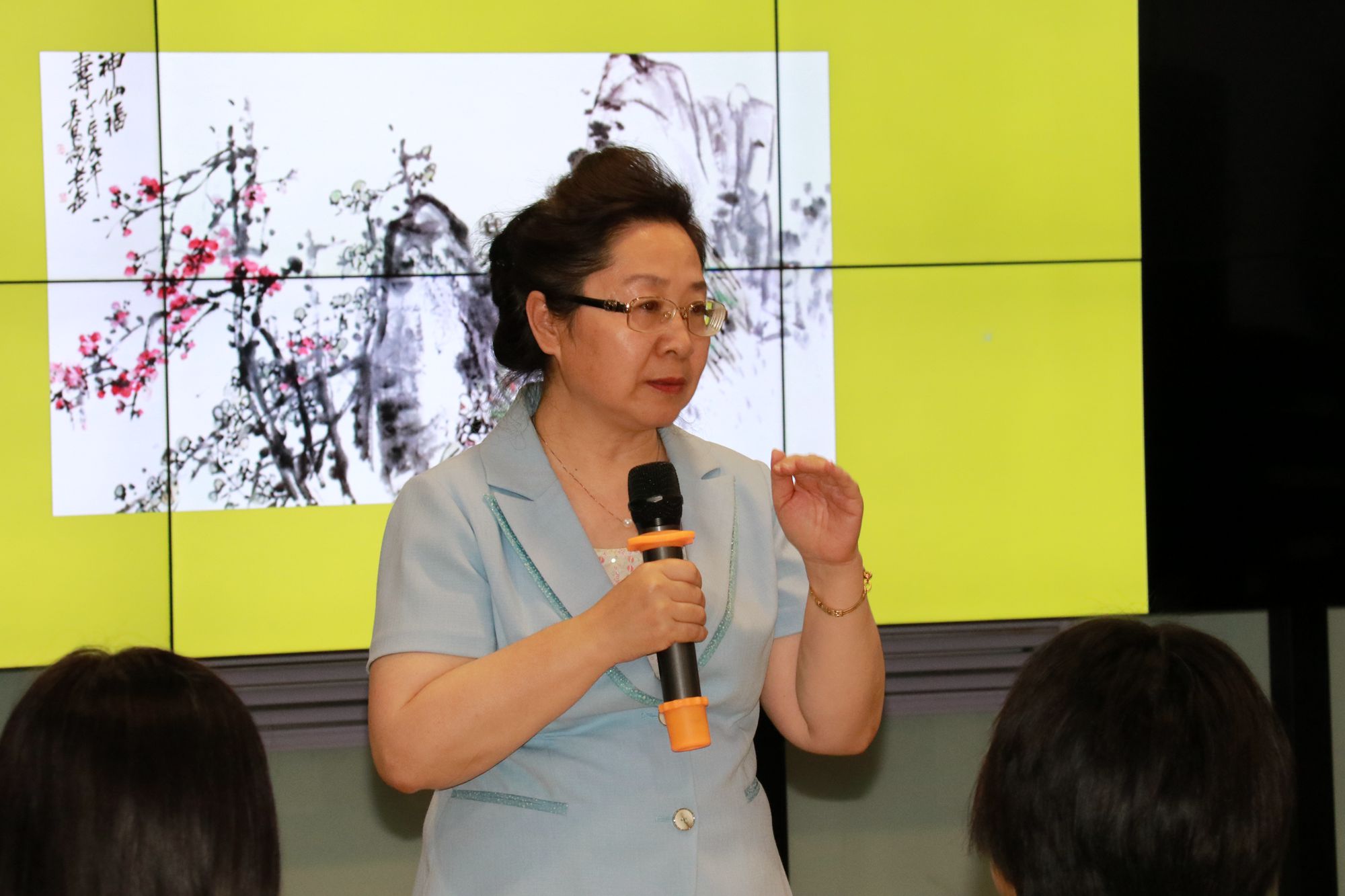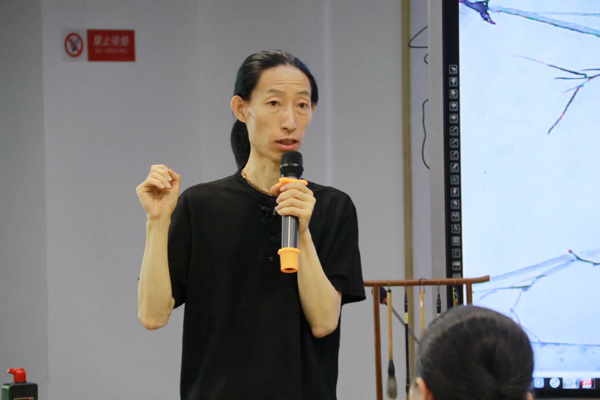 中华优秀传统文化体验课堂“中西美术比较视野下的中国画特点”是由sunbet申搏艺术学院副教授周光浩老师主讲,全部内容大约6讲,课程分为理论环节和实践环节。在第一讲中,周老师以中国画发展过程中的历史溯源为主线,对中国画的艺术流派、表现风格、笔墨技法等方面做了简要介绍,对中西美术的表现形式、风格特点进行对比,就二者在工具使用、色彩表现、创作理念等方面存在的差异进行解读,重点剖析了国画中蕴藏的优秀传统文化元素。在实践环节,周光浩老师就执笔姿势、坐姿、用笔方法(中锋和侧锋)进行培训,随后示范了兰花的叶子和花朵的画法,并现场指导教师创作兰花小品,现场教师参与热情高涨,气氛热烈。
