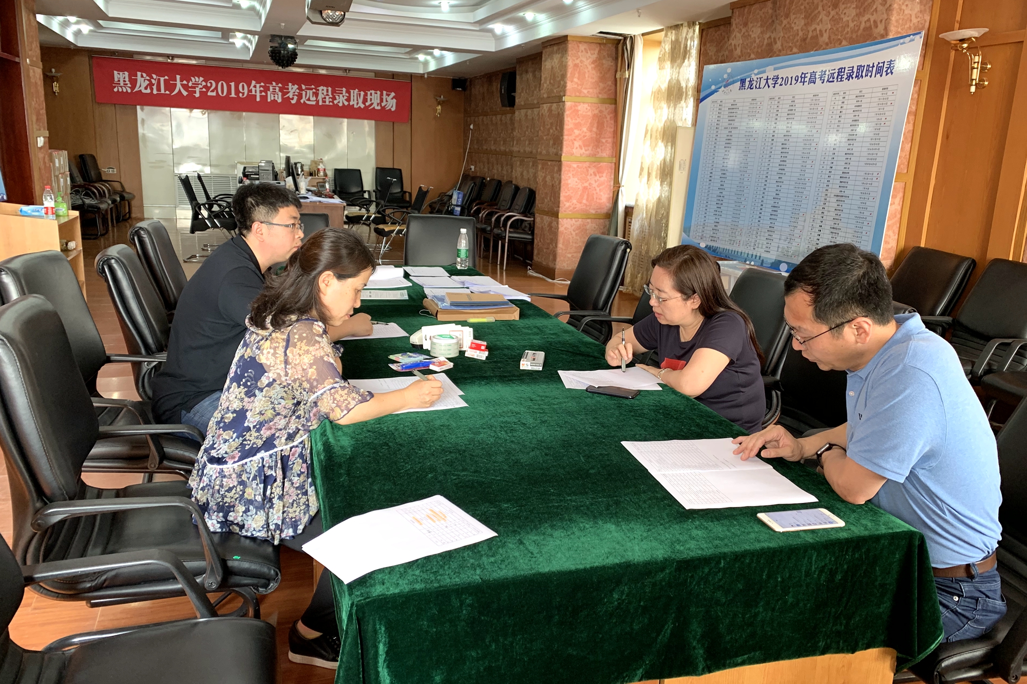 校党委副书记丁宏同志还在现场对即将于7月18号开始的黑龙江省一批次的录取工作可能发生的情况进行了分析和预判,制定了一批次录取工作预案;同时对招生工作进一步科学化给出了指导意见,并要求招生就业指导中心将今年一志愿录取率低的情况及时向相关学院进行反馈并在2020年的招生工作中进行调整。
