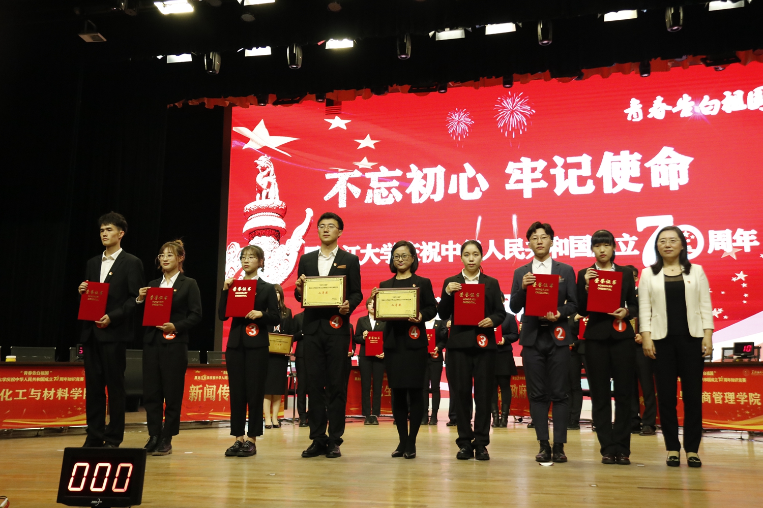 决赛共分为必答题、抢答题和风险题三个环节。通过一个半小时的激烈角逐,研究生院荣获一等奖,经济与工商管理学院、化学化工与材料学院获得二等奖,法学院、政府管理学院和新闻传播学院获得三等奖,与会领导分别为获得一等奖、二等奖、三等奖的学院颁奖。