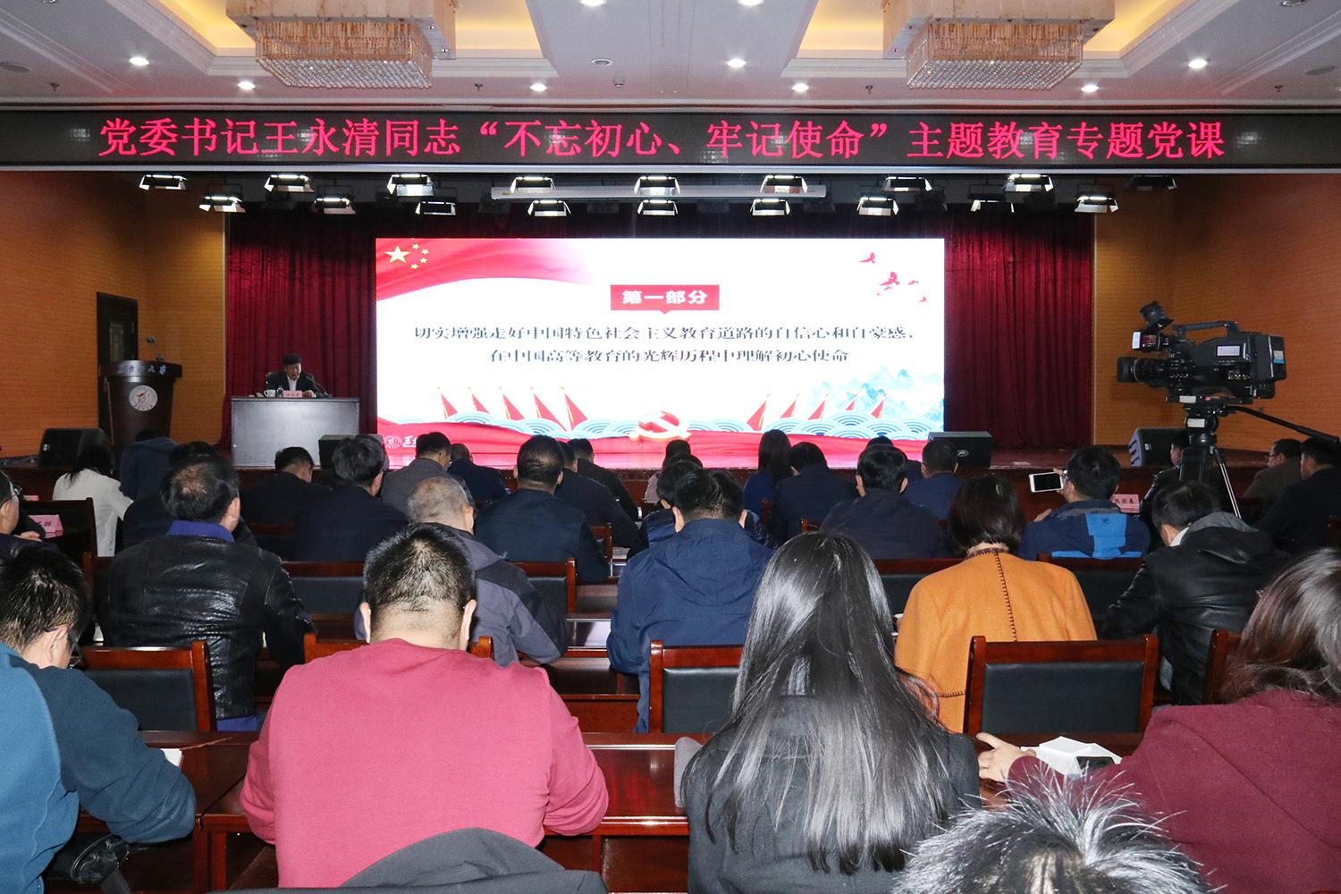 省委第七巡回指导组成员杨力瑕、夏天,校领导、党员中层干部、全校党支部书记参加了专题党课。(摄影:齐浩泽 魏越 温馨)