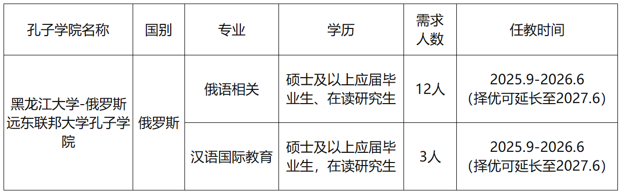 硕士及以上应届毕业生,在读研究生,回国志愿者注。欢迎掌握赴任国语言、专业为汉语国际教育、具有教学经验、持有《国际中文教师证书》和品学兼优的学生踊跃报名。