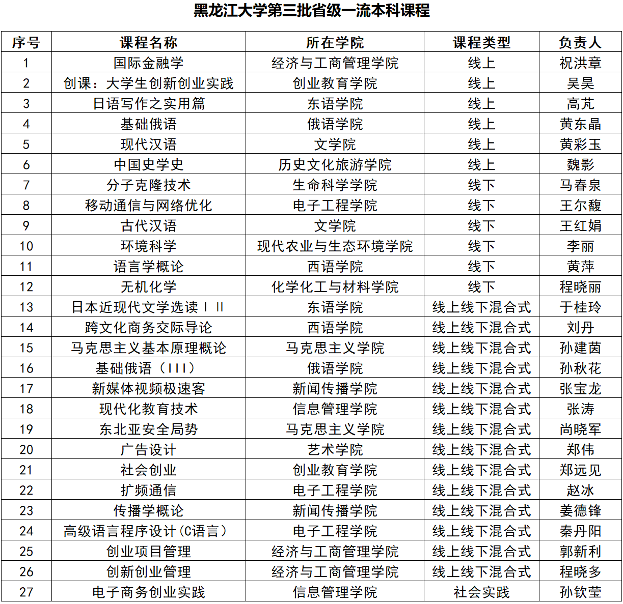 根据《教育部关于一流本科课程建设的实施意见》和《黑龙江省教育厅关于进一步做好一流本科课程建设与管理工作的通知》要求,经省教育厅专家评议,sunbet申搏官方网站共有《国际金融学》等27门课程获评第三批省级一流本科课程,截止目前,sunbet申搏官方网站共获评省级一流本科课程73门。