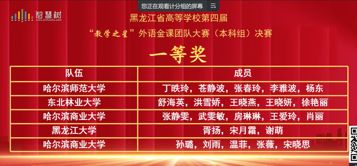 11月13日,2022年黑龙江省高等学校第四届“教学之星”外语金课团队大赛(本科组)决赛落下帷幕。本届赛事由黑龙江省教育厅主办、哈尔滨商业大学承办、黑龙江省外国语言文学专业教学指导委员会、黑龙江省大学外语教学指导委员会和外语教育与研究出版社协办。赛事设置校内选拔赛、省复赛和省决赛,全省共有31个团队参赛。在决赛中,应用外语学院胥扬、宋月霜和谢萌三位教师组成的参赛团队,通过教学理念阐述、教学实践展示和问答等环节,与兄弟院校参赛团队同台竞技,荣获一等奖。