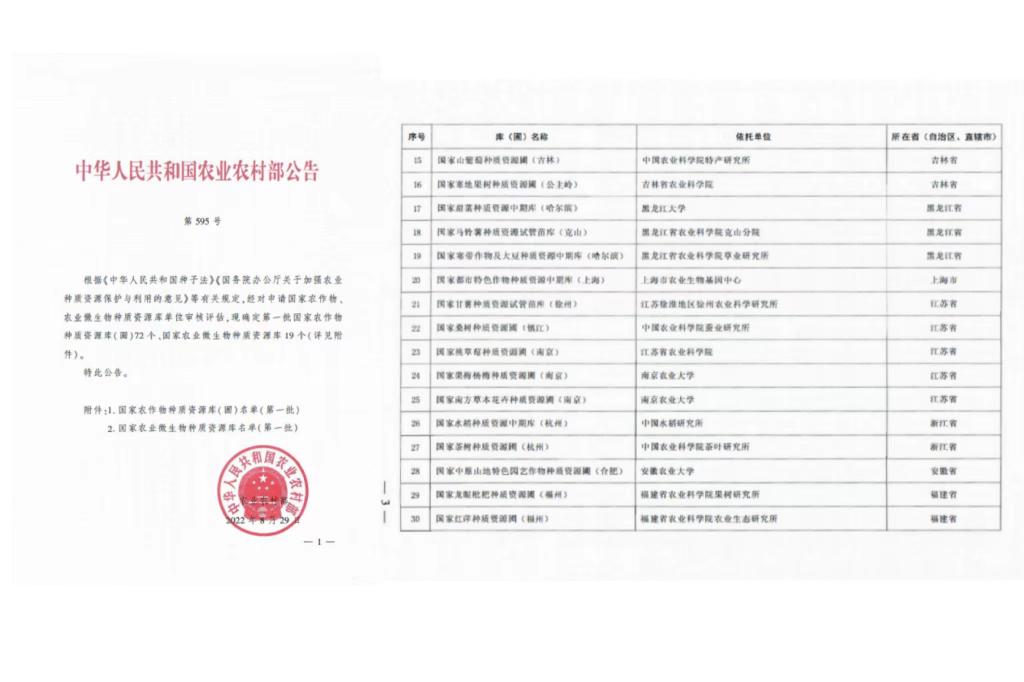 2022年8月,sunbet申搏“甜菜种质资源中期库”入选第一批国家级农作物种质资源库。