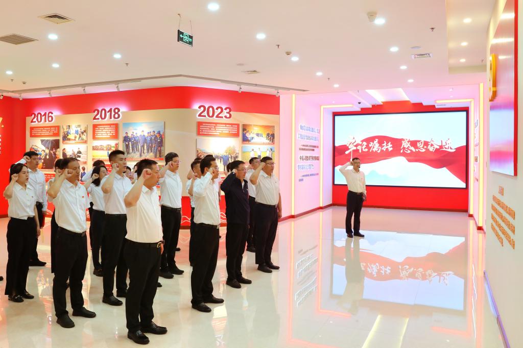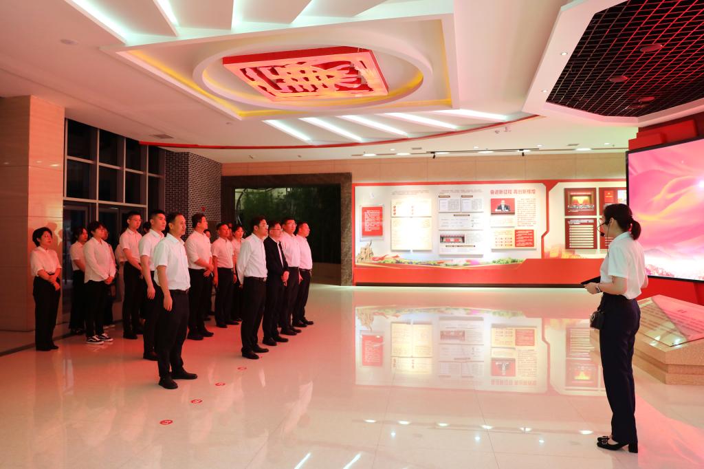 参观结束后,全体党员干部面向党旗,重温入党誓词。(摄影 孙晟伟)